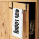 Las celebraciones festivas de Noche Vieja necesitan una toalla de la Feliz Año Nuevo en la barra o la cocina. Diseño de la tostada del champán de la diversión. Modifique la plantilla del texto para requisitos particulares por cualquier año.