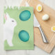 Toalla de cocina de Pascua con huevos de Pascua verde azulados y diseño de conejo.