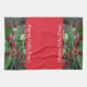Añada alegría para las vacaciones de invierno con estas hermosas toallas rojas festivas con imágenes fotográficas de ramas verdes y saludables con bayas rojas brillantes. Felices Días Holly durante la temporada de Navidades. Puede personalizarse fácilmente con su nombre familiar o su propio texto. Esta imagen es fotografía botánica original de JLW_PHOTOGRAPHY.