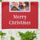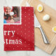 Añada la foto favorita de las madres a esta toalla de cocina personalizada de navidades rojos y blancos. Con una linda nieve de puntos de polka blanco. Para cambiar el texto y la foto, haga clic en el botón de personalización.