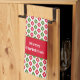 Toalla de cocina divertida y elegante con adornos navideños en rojo y verde clásico con una estrella y un elegante estilo moderno de mediados de siglo. Las letras son personalizables para que puedas añadir tu apellido o el saludo de vacaciones favorito. Deja los colores como están o elige fácilmente tu propio esquema de color para que coincida con tu estilo.