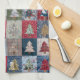 A seamless Christmas tree pattern kitchen towel featuring a charming patchwork design in red, green, gold, and blue tones. This cozy and nostalgic print combines holiday warmth with a handmade look, perfect for seasonal decor, winter themes, and Christmas-inspired designs. Ideal for those who love rustic, festive, and country-style patterns.