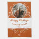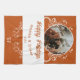 Festive Happy Holidays Foliage Naranja Couple Photo towel. Bonita follaje blanco sobre un oscuro fondo naranja. Personaliza la toalla con tus nombres, foto y año.