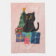 Paño De Cocina Festividad Feliz Navidad Cute Negro Cat Café Rosa