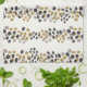 Un diseño contemporáneo y punteado, perfecto para un regalo de bienvenida. Paleta de colores inspirada a mediados de siglo de oro, verde, marfil y gris.
