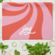 Esta divertida y festiva toalla de cocina de vacaciones cuenta con un fondo de rosado y rojo. Este diseño se coordina con nuestra colección de vacaciones Mod Wavy Groovy.