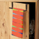 El color de fondo (que se muestra aquí en un intenso naranja) de esta toalla de cocina puede cambiarse a cualquier color que desee. Considere un conjunto de colores diferentes emparejado con otros accesorios de mi colección de Fiesta Arcoiris para dar energía a su cocina.