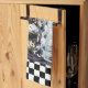 16" x 24" toalla de cocina con un vintage Alicia en la imagen del país de las maravillas de Alicia en la fiesta del té del sombrerero enojado con las liebres de marzo, y el Dormouse en un tablero de damas gris y blanco con las fronteras blancos y negros anchas del tablero de damas. Vea la servilleta a juego del paño, la servilleta de papel del cóctel, el placemat del paño, el placemat de papel y los prácticos de costa. Vea la colección entera de la toalla de cocina del país de las maravillas en la sección de los linos de FOOD/BEV el |.