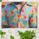 Gracioso hipopótamo usando una camisa hawaiana en una hermosa playa.