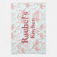 Esta toalla de cocina "Flamingo Love" muestra pares de flamencos rosas sobre un suave fondo azul. Sus cabezas se doblan para parecerse a un corazón. El diseño está decorado con plumas rosas. ¡personalizar tu nombre hoy! Material gráfico creado por: AMBilustrations http://www.etsy.com/shop/AMBillustrations/