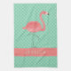 Paño De Cocina Flamingo Rosa Con Polkadot Verde-Mint
