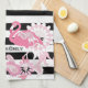 Paño De Cocina Flamingo rosa de franja blanca y negra moderna