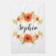 Toalla de cocina con flores de color coral sobre fondo blanco y texto de personalizable.