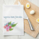 Floral de primavera presenta un diseño floral ligero y elegante. Esta deliciosa toalla de mano alegrará tu cocina. Las flores y hojas tienen un aspecto suave de acuarela y el texto con letra cursiva dice 'la felicidad florece desde dentro' se puede personalizar con tu propia frase o un nombre. Esta toalla está diseñada para que puedas ver las flores y el texto ya sea que esté doblada por la mitad o en cuartos.