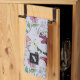 Esta toalla de cocina Floral Hummingbird Garden Lavender Purple presenta un estilo de jardín a mano con colibríes, flores exóticas y setas. Monograma de personalizable instalado dentro de un cuadrado negro moderno para un diseño limpio y personalizado.