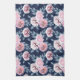 Paño De Cocina Flores blancas y rosas sobre azul oscuro.