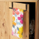 Diseño de acuarela floral colorido y moderno en una toalla de cocina.
