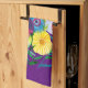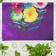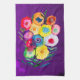 Arte abstracto de color de agua, arte fino. Árbol floral de flores de color arcoiris. Diseño divertido. Fondo morado.