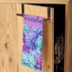 Esta toalla de cocina cuenta con magníficas flores de hidrangea combinadas en un patrón floral y exuberante. ¡Por todas las damas! Colores en turquesa, lavanda, azul. ¡Texto y color personalizado!