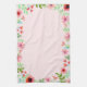 Toalla de cocina rosa con borde de flores de verano. También con fondo blanco o azul.
