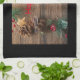 Paño De Cocina fondo de madera con conos de pino