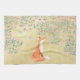 Ilustracion de zorro y mariposas color agua dulce con hermosas hojas de flores rosadas y ramas patrón en un falso fondo de Relieve metalizado dorado. NOTA: Estos son gráficos impresos planos - no Relieve metalizado de oro real.