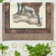 Paño De Cocina Fox Rústica pisando un tronco de árbol