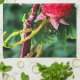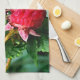 Las frambuesas rojas silvestres son el tema de esta toalla de cocina de arte. Dos bayas jugosas de color crema se unen a las ramas de ladrillo marrón rojo. Las hojas verdes y el fondo turquesa acuático completan el diseño abstracto. La fotografía se ha mejorado digitalmente para crear un sentimiento impresionista.