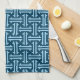 Toalla de cocina en un mosaico de estilo Art Deco chino Fretwork con añil oscuro / azul marino y azul celeste claro