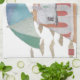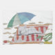 El " bulldog francés blanco en la playa", originalmente del arte mano-rasgado del collage del periódico de mí, bendice tonalidad. (c) Keiko Suzuki.