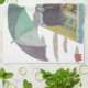 El " bulldog francés negro en la playa", originalmente del arte mano-rasgado del collage del periódico de mí, bendice tonalidad. (c) Keiko Suzuki.