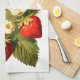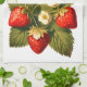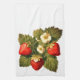 Toalla de cocina de fresas de época. ilustracion gráfico con algunas fresas maduras con hojas verdes y flores blancas. Tiene un agradable ambiente de verano temprano. _____________ Creado por Alma Wad y Canva AI . ____________ Muy bien para un picnic de verano, fiesta de jardín, fiesta champête .