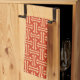 Toalla de cocina en una teja estilo Art Déco de Fretwork chino en naranja mandarín profundo y naranja pastel