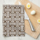 Toalla de cocina en un embaldosado de estilo Art Déco con Fretwork chino en tonos marrones y blancos