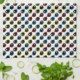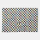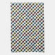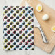 Esta toalla de cocina presenta un patrón colorido formado por gafas de sol inspiradas en el diseño retro de los años 70 en tonos primarios de rojo, azul y amarillo con acentos negros.