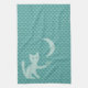 Regalos para los amantes de los gatos con gatitos juguetones jugando con una estrella colgada de la luna sobre un fondo verde azulado.