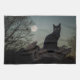 Paño De Cocina Gato negro en un árbol frente a una luna llena
