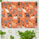 El gato blanco, el gato negro, el gato manchado, el gato persa, el gato siamés y el gato esmoquin llevan gorras de brujas y disfraces de Halloween con murciélagos dispersos y huellas de pata.