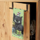 Talla de cocina para Navidades de la fabricación de gatos negros - El fondo de burbujas verde fantasmagórico contrasta los gatos negros esponjosos como el elemento principal. El gato está jugando con los regalos de Navidad en una escena y sentado en el árbol de Navidad en la otra. Qué toalla tan divertida para cualquier amante del gato durante todo el año. Estas toallas hacen que una pieza de diseño improvisada le añada un poco de alegría a una guinda dulce, para alinear una cesta de pan, usar como toallas de baño o directamente en la cocina. Estas toallas de cocina son muy útiles, ideales para todos los días en la cocina o para ser utilizadas como elemento decorativo en la decoración de tu casa. Felices Fiestas de Kristin y Steve - Tienda de Tarjetas KNS.