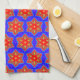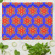 Un atractivo patrón geométrico predominantemente en tonos rojos y azules, pero también con amarillo, cian, púrpura y verde.