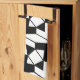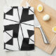 Toalla de cocina de arte geométrico en blanco y negro. Los triángulos blancos y negros cuadran el patrón geométrico.