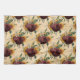 Un patrón muy detallado de girasoles dorados, ranunculus marrón, frentes verdes de helecho, ramas de sauce en la parte superior de un fondo monocromo de color damasco