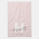 Paño De Cocina Girly Monograma Guión moderno Rubor Pink Inicial