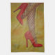 Goody Two Shoes es una pintura original en rojo y amarillo de una mujer que usa medias de redes de pesca y zapatos brillantes rojos con tacón. Un regalo único con un tema de moda ideal para las campañas del Día del zapato rojo, o Caminatas del zapato rojo. Perfecto para los amantes de las leggings, de las azaditas y de la moda, de los amantes de la estética de borrón o de los fetichistas de medias y tacones altos. © Painting 2008