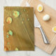 La imagen de esta toalla de cocina es una fotografía original de ZoeSPEAK de gotas de lluvia en un borde de una palmera de Manilla. El naranja de roya está curvo, dándonos vistas de las gotas de agua de naranja de roya espacial desde diferentes ángulos. En la parte superior de la curva vemos un horizonte de gotas de lluvia en el fondo oscuro. A medida que las curvas de los anillos giran alrededor, las gotas tienen brillantes luces destacadas y se vuelven más pequeñas hacia abajo a la sombra.