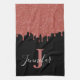 Toalla de Cocina con Goteo de Brillo de Monograma Rosa y Negro