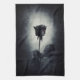 Una toalla de mano con un ilustracion macabro de un rosa negro de estilo gótico/emo con sangre goteante roja sobre sus pétalos. Un fondo de color negro gris, con un color blanco roto, que destaca este misterioso e interesante rosa de fantasía.
