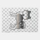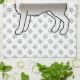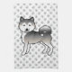 El original ilustracion personalizado de Destei de un perro de raza Malamute de color gris. El fondo tiene un patrón de huellas de perros grises.
