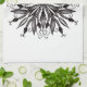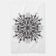Toalla gótica de cocina de mandala con hojas y serpientes dibujadas digitalmente en blanco y negro, con sombra de un pezón.