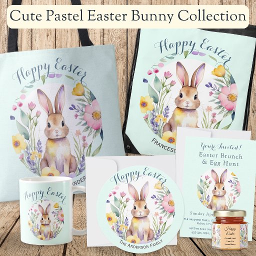 Paño De Cocina Happy Easter Watercolor Bunny Custom Name